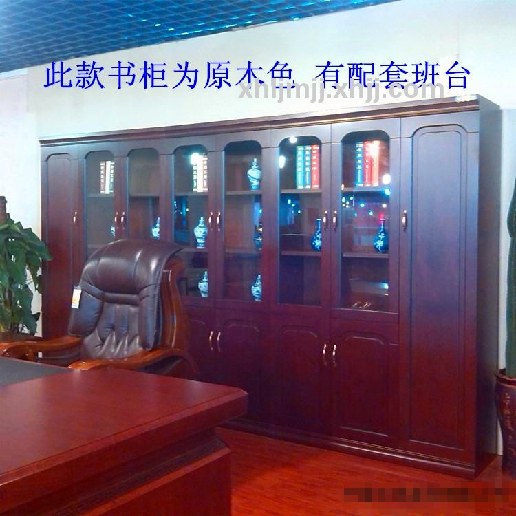 » 香河木质实木皮文件柜 办公柜 油漆书柜 特价简约玻璃门书柜 斗柜